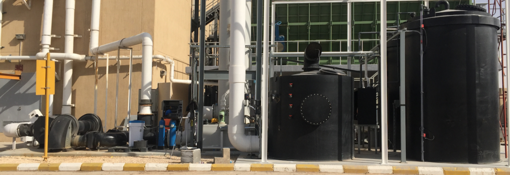 After a complete technical study for the odour control unit in Manfuha region, Tholander has proposed a solution for the National Water Company to solve their problem. It consists of a chemical scrubber system unit, which can reduce the H2S for more than 500ppm to less than 5 ppm. This system was designed to be integrated with the existing carbon odour control system to get a final concentration of H2S that is less than 2ppm. In a short period the material was delivered to the main contactor in Feb 2016, and the installation was completed within less than a month. By the end of April 2016, the system is continuously operating since that date with a perfect result.