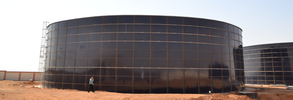 Omerastore has supplied three GLS tanks for water reservoir and distribution project in Turaif, after a visit of a technical team from the Ministry of Water and Electricity to its fabrication facility. This project consists of three GLS tanks; each one is 45.21m for its diameter and 12.67m for its height with a total net volume 20,339m3, with a trough deck roof. In 2015 Omerastore received the order from the main contractor to start the fabrication of the tanks. The first tank was delivered in August, and the contracture has started the tanks installation on November 2015. The project was moved in a right way by the presence of Omerastore and GEST supervisors on the site during the hall installation period and the continues support from both Omerastore and GEST. The cooperation between the contractor and our team has managed to overcome all the difficulties during the project, and now the project is about to be successfully completed.